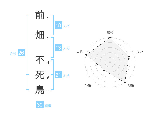 前畑 不死鳥さんを姓名の画数から五運を鑑定