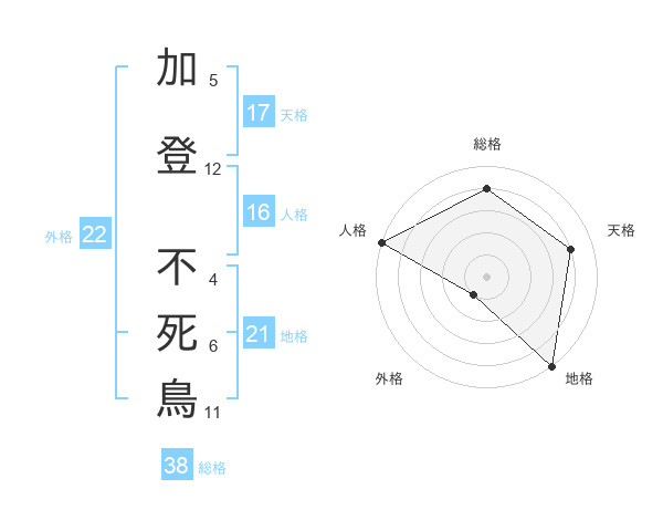 加登 不死鳥さんを姓名の画数から五運を鑑定