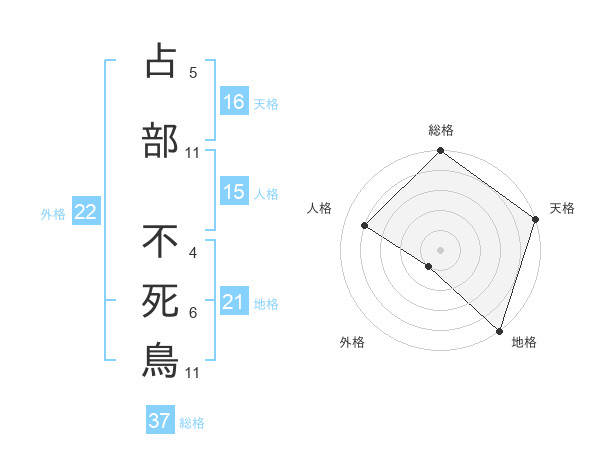 占部 不死鳥さんを姓名の画数から五運を鑑定