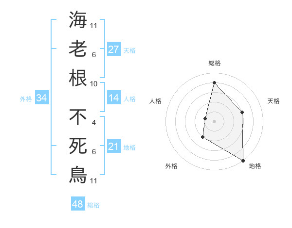 海老根 不死鳥さんの総格は48画の4点