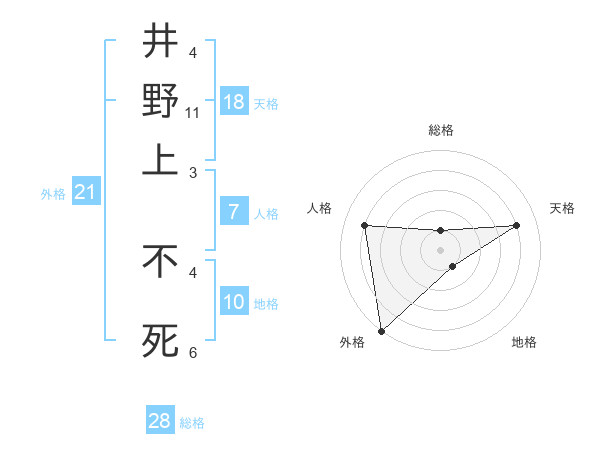 占い結果は姓名判断である以上、良い場合も悪い場合もありますが、決してお名前を誹謗中傷するものでなく、画数の自動計算によって得られたものです。また、本サイトの検索によって得られた鑑定結果で、第三者を誹謗中傷したり名誉を棄損するような行為を禁じます。