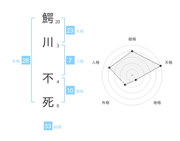 鰐川 不死さんを姓名の画数から五運を鑑定