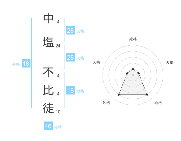 中塩 不比徒さんを姓名の画数から五運を鑑定