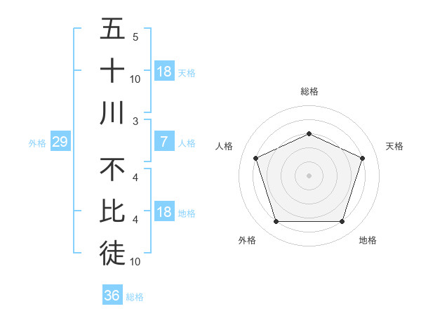 五十川 不比徒さんの総格は36画の3点!