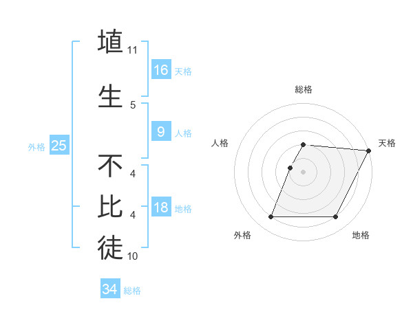 埴生 不比徒さんを姓名の画数から五運を鑑定