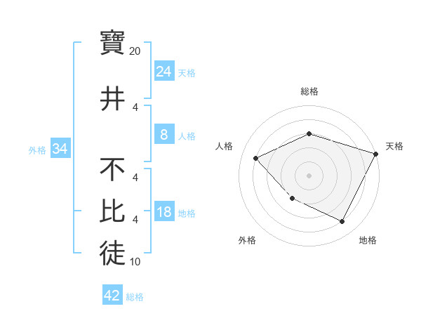 寶井 不比徒さんを姓名の画数から五運を鑑定