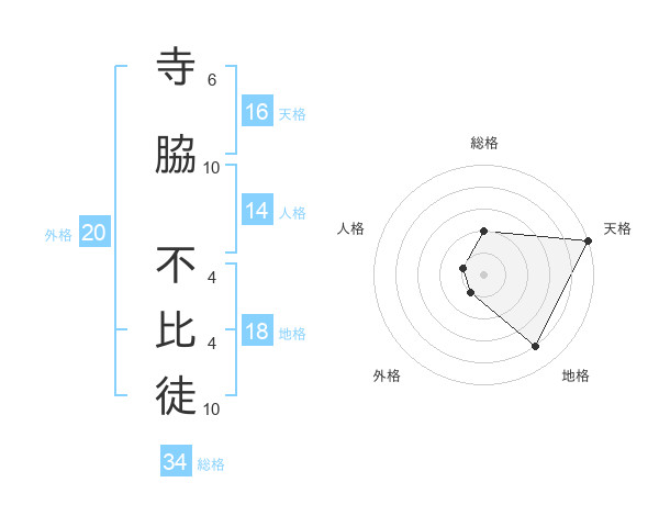 寺脇 不比徒さんを姓名の画数から五運を鑑定