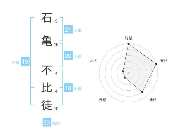 石亀 不比徒さんを姓名の画数から五運を鑑定