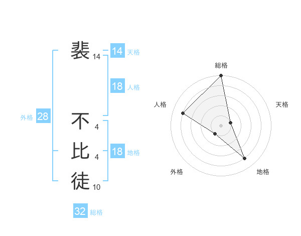 裴 不比徒さんを姓名の画数から五運を鑑定