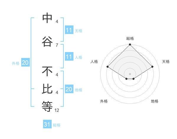 中谷 不比等さんを姓名の画数から五運を鑑定