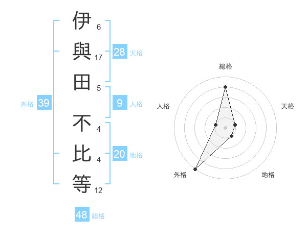 伊與田 不比等さんの外格は39画の5点!
