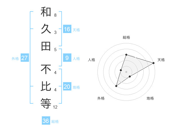 和久田 不比等さんの天格は16画の5点
