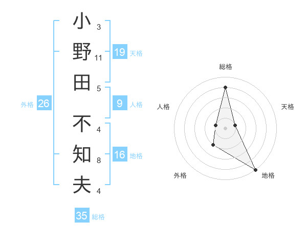 小野田 不知夫さんを姓名の画数から五運を鑑定