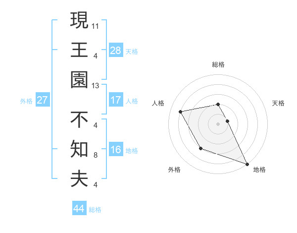 現王園 不知夫さんの総格は44画の2点!