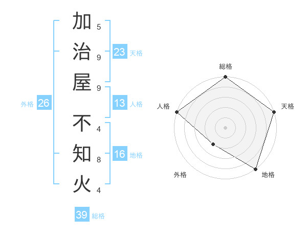 加治屋 不知火さんを姓名の画数から五運を鑑定