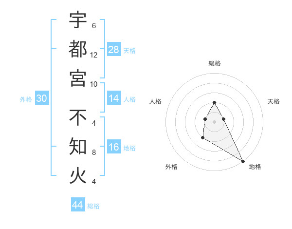 宇都宮 不知火さんを姓名の画数から五運を鑑定