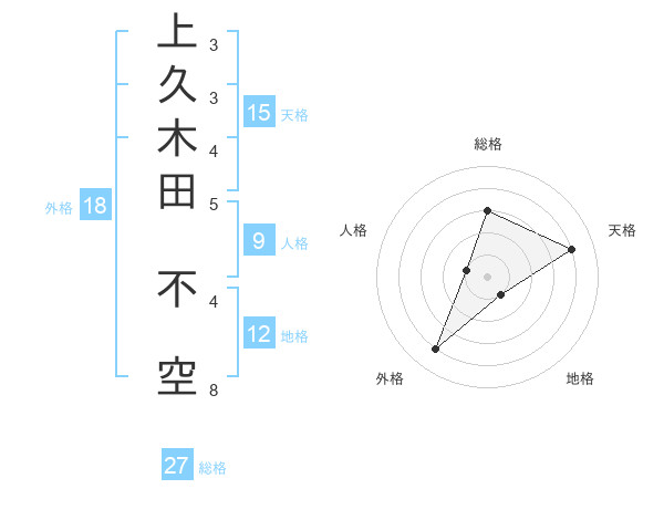 上久木田 不空さんを姓名の画数から五運を鑑定