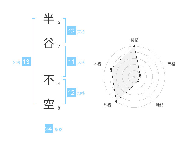 半谷 不空さんの外格は13画の5点!