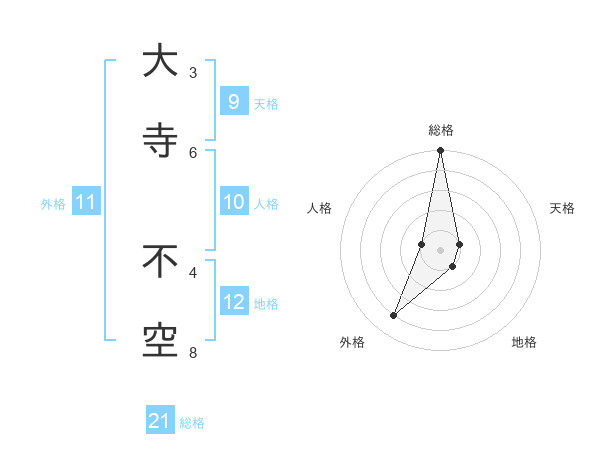 大寺 不空さんの総格は21画の5点!