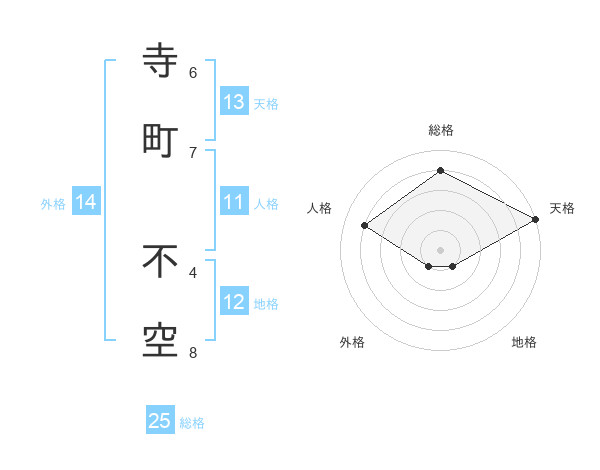 寺町 不空さんの総格は25画の4点!