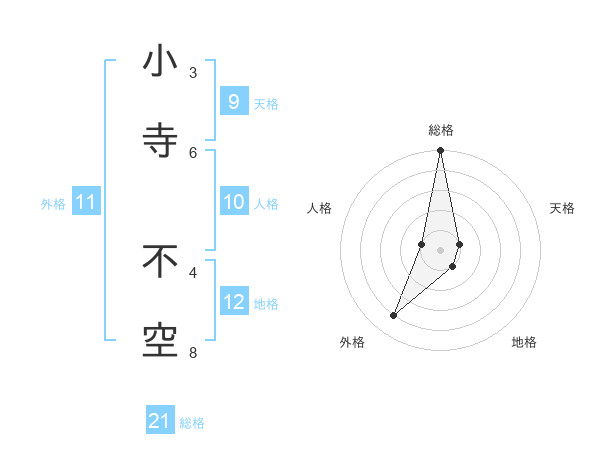 小寺 不空さんの総格は21画の5点!