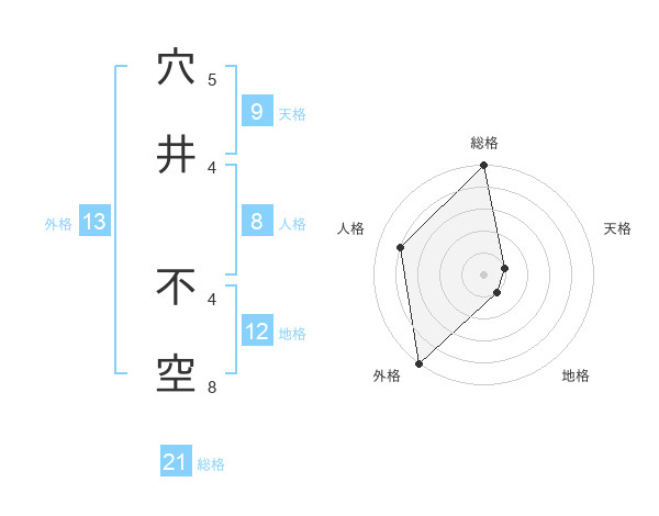 穴井 不空さんの総格は21画の5点!