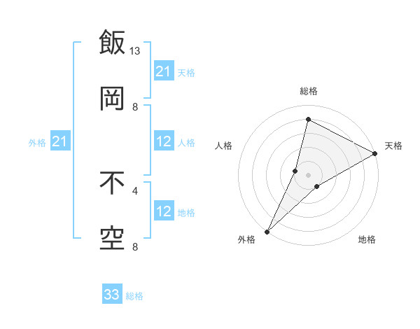 飯岡 不空さんの外格は21画の5点!