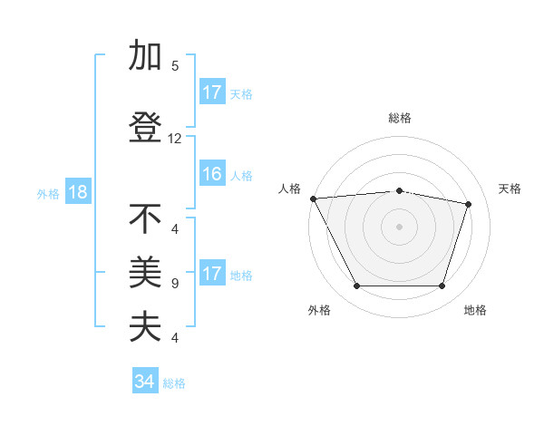 加登 不美夫さんを姓名の画数から五運を鑑定