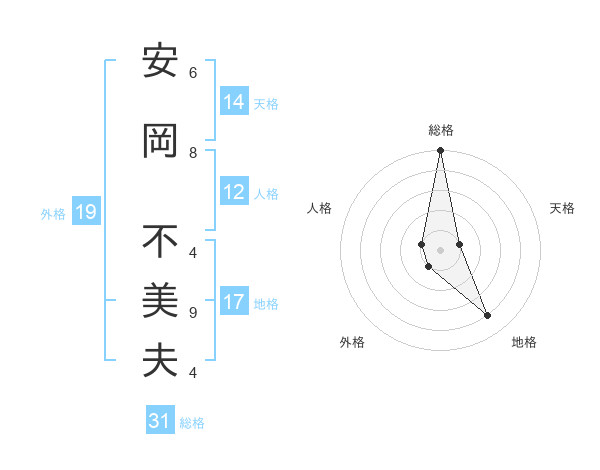 安岡 不美夫さんを姓名の画数から五運を鑑定
