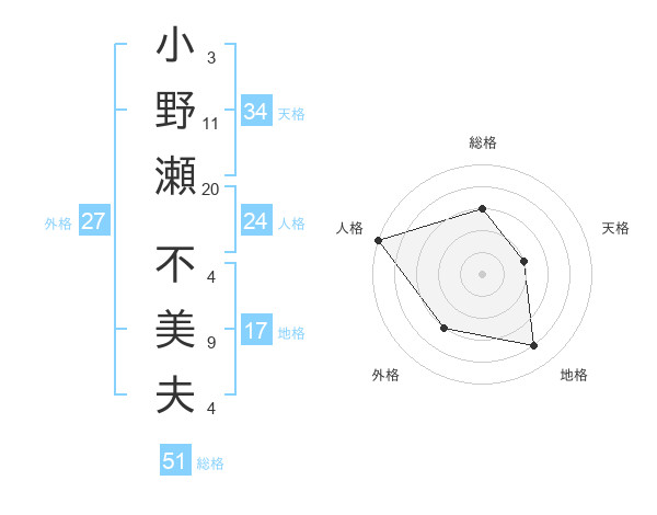 小野瀬 不美夫さんを姓名の画数から五運を鑑定