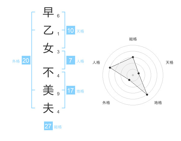早乙女 不美夫さんの総格は27画の3点!