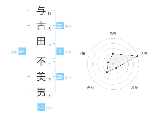 与古田 不美男さんを姓名の画数から五運を鑑定