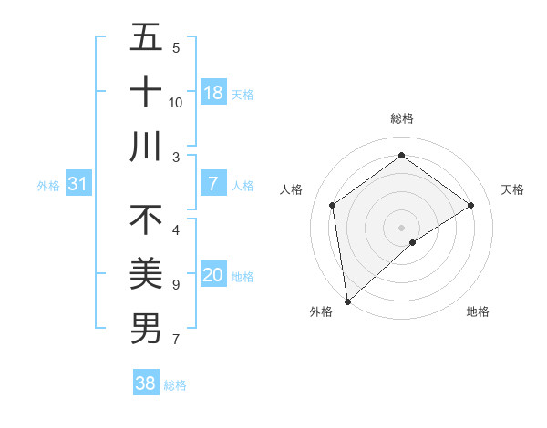 五十川 不美男さんを姓名の画数から五運を鑑定