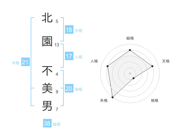 北園 不美男さんの総格は38画の4点!