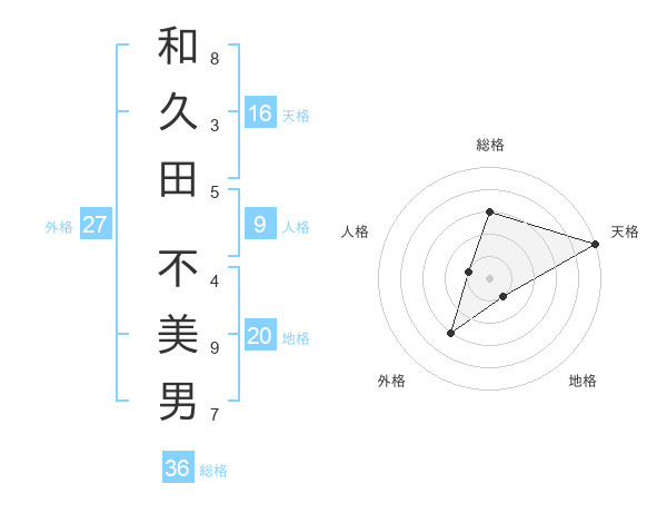 和久田 不美男さんを姓名の画数から五運を鑑定