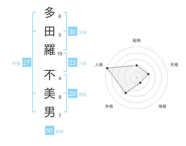 多田羅 不美男さんを姓名の画数から五運を鑑定
