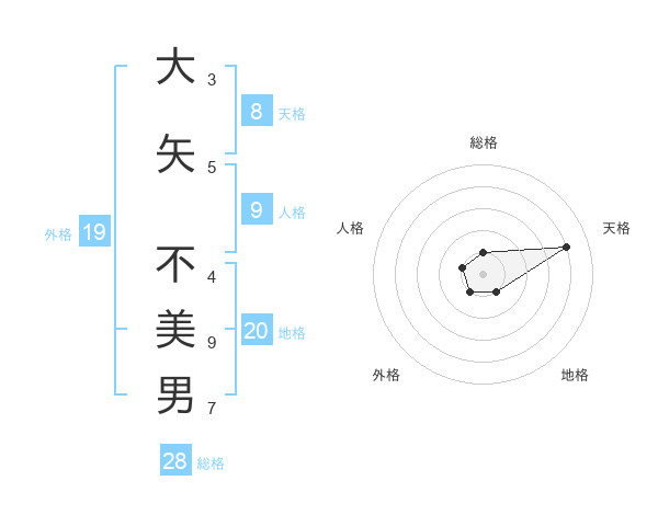大矢 不美男さんを姓名の画数から五運を鑑定