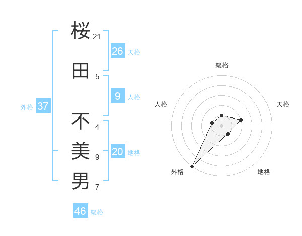桜田 不美男さんを姓名の画数から五運を鑑定