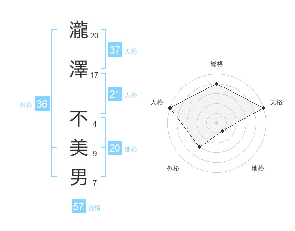 瀧澤 不美男さんの総格は57画の4点!