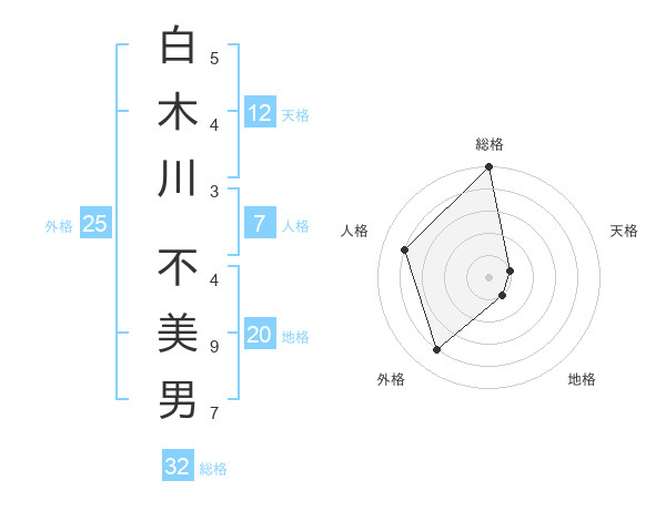 白木川 不美男さんを姓名の画数から五運を鑑定