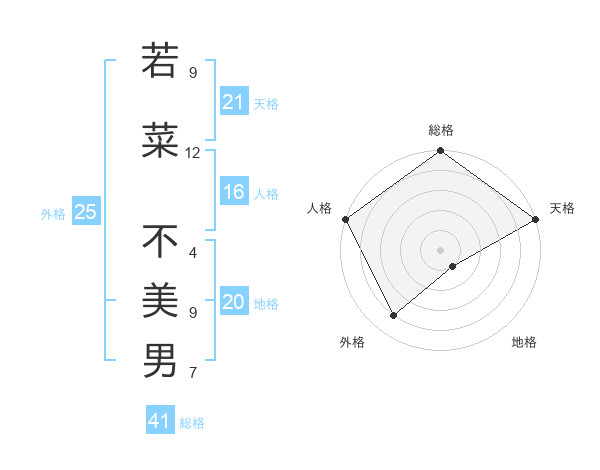 若菜 不美男さんを姓名の画数から五運を鑑定