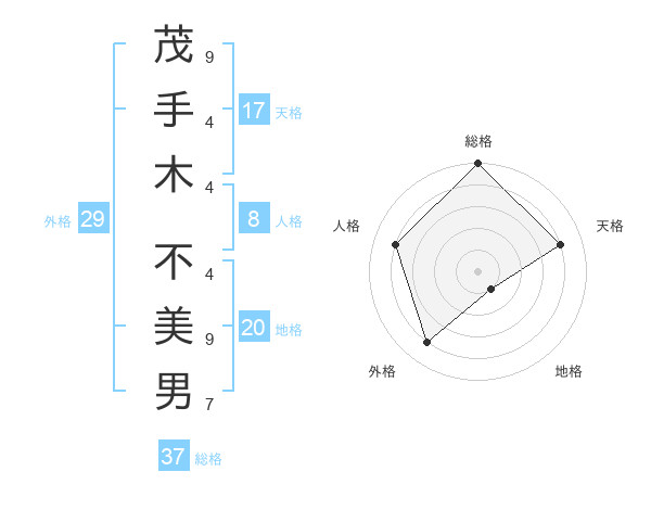 茂手木 不美男さんを姓名の画数から五運を鑑定