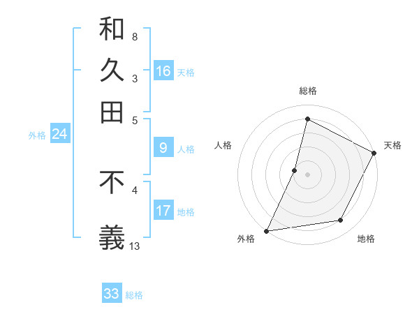 和久田 不義さんの天格は16画の5点!