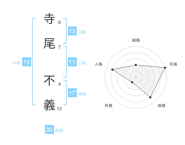 寺尾 不義さんの天格は13画の5点!