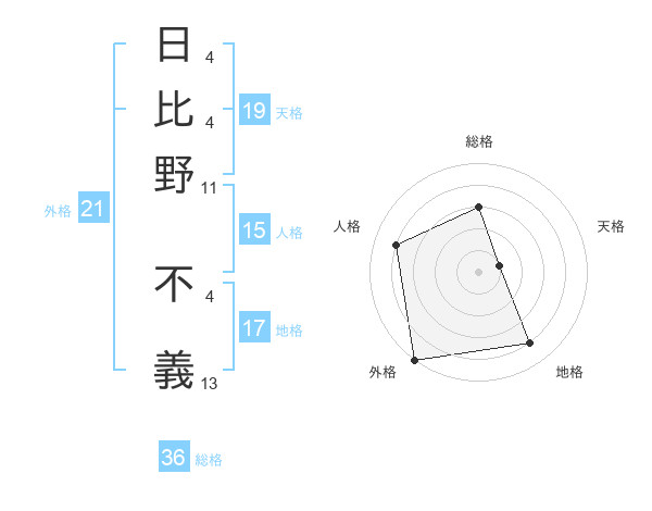 日比野 不義さんの外格は21画の5点!