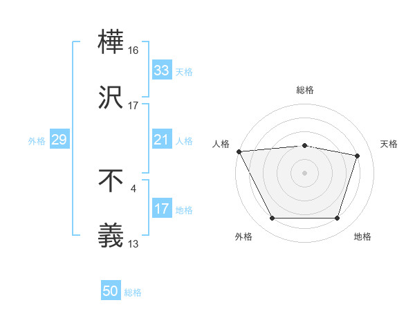 樺沢 不義さんを姓名の画数から五運を鑑定