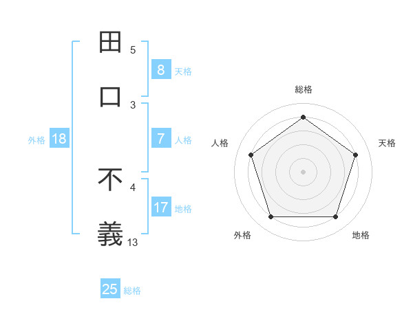 田口 不義さんの総格は25画の4点!