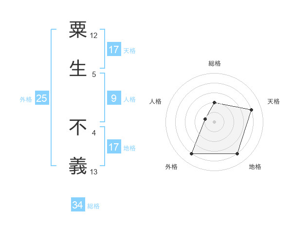 粟生 不義さんの地格は17画の4点!