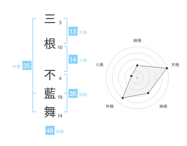 三根 不藍舞さんを姓名の画数から五運を鑑定