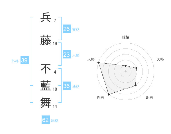 兵藤 不藍舞さんを姓名の画数から五運を鑑定